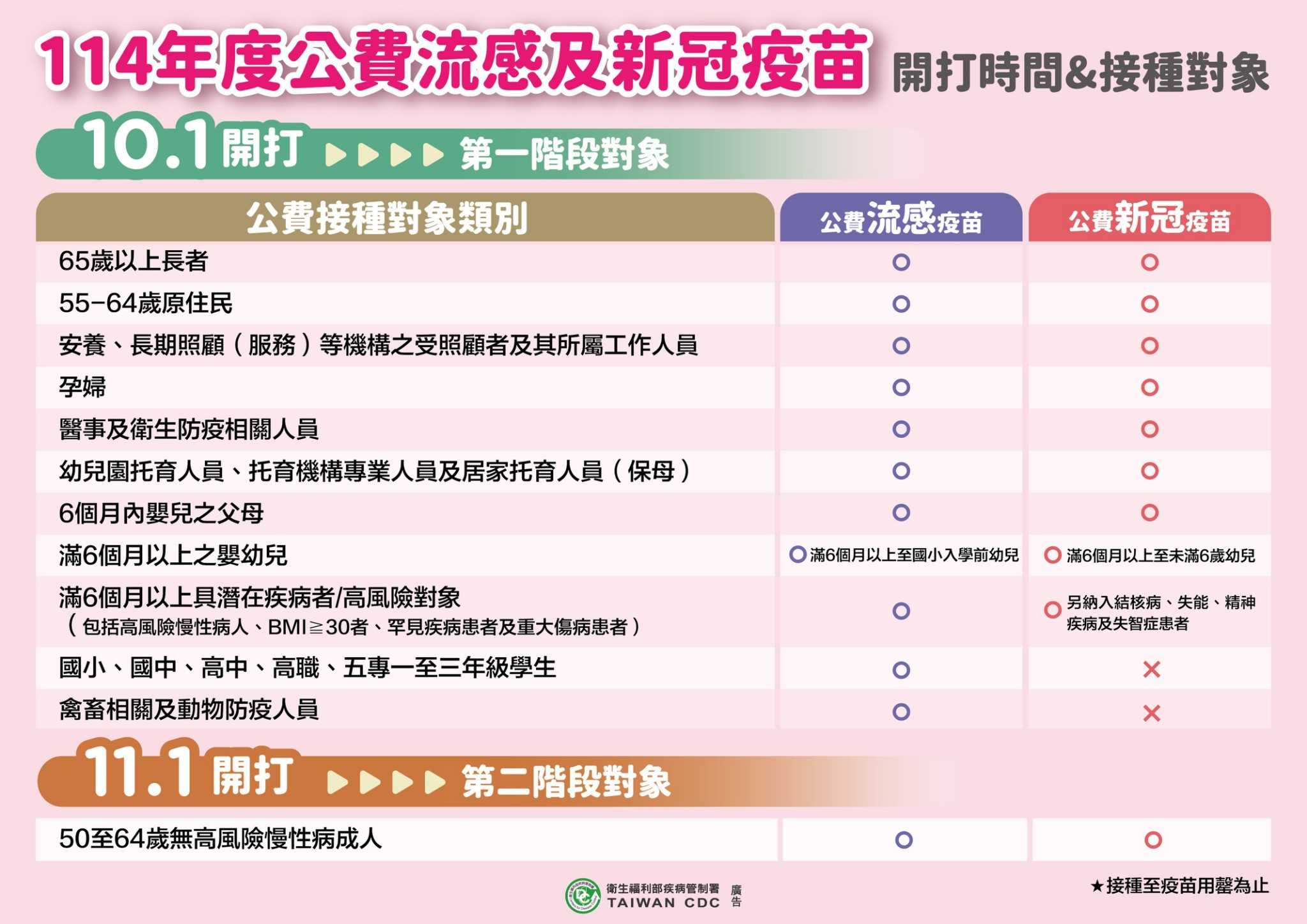 114年10月1日起,流感+新冠疫苗(莫德納LP.8.1) 公費開打