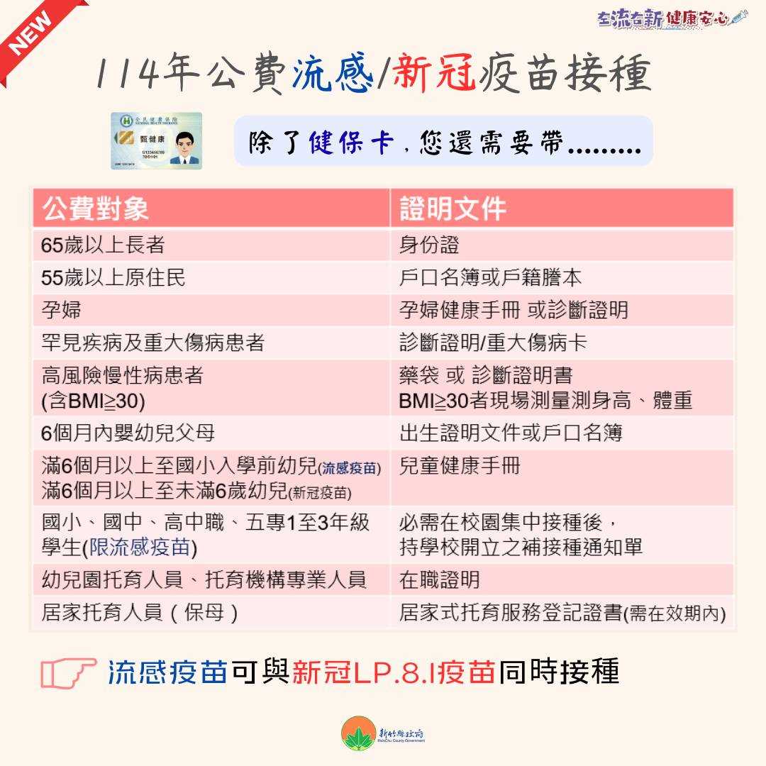 第1階段自10月1日起,接種對象包括65歲以上長者、滿6個月以上至國小入學前幼兒、具潛在疾病者等11類對象。 第2階段則自11月1日開打,接種對象新增50至64歲無高風險慢性病成人。 #成人流感接種時間為星期一至五上午9點到12點 #小兒流感接種時間為星期一及星期四上午9點到12點 #小兒流感請帶健保卡跟兒童健康手冊 #11月假日流感疫苗設站時間如照片檔 #如有疑問請來電03-5851005